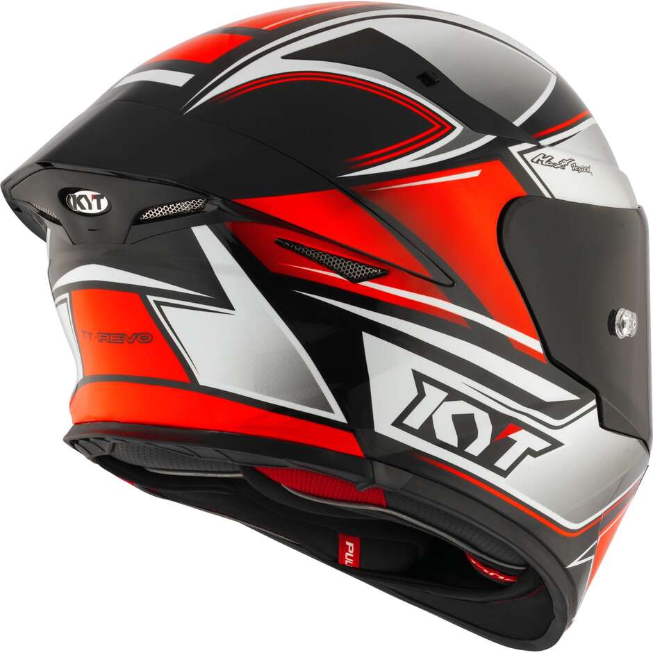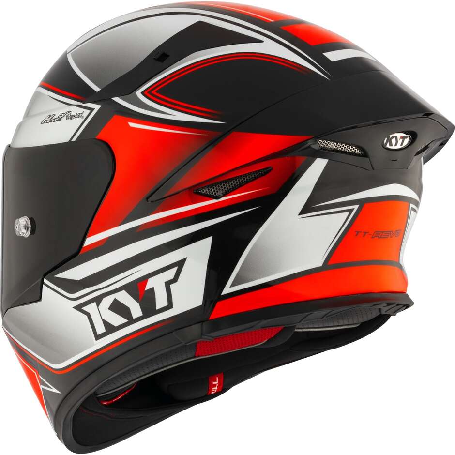 TT-REVO, KYT trkačka kaciga sa celim licem, napravljena od termoplastike sa ADT-Advanced tehnologijom; njeni fascinantni i ekstremni oblici su dubinski proučavani u aerotunelu kako bi se postigle najbolje aerodinamičke performanse bez zanemarivanja stilskog i ergonomskog aspekta. Rafinirana mehanika mehanizma vizira je dizajnirana da ponudi i praktičnost upotrebe i efikasnost. Visokokvalitetni enterijeri su optimizovani da ponude najbolje performanse u pogledu udobnosti i protoka vlage unutar kacige. Saradnja sa aeronautičkim inženjerima, upotreba inovativnog softvera i korišćenje aerotunela dali su život ovoj inovativnoj kacigi: agresivnoj, udobnoj i efikasnoj. TT-Revo, trkačka kaciga koja se ističe svakog dana Tehnički list sa podacima: Bezbednost: Školjka napravljena od ADT-advanced, mešavine termoplastičnih smola sa visokom otpornošću na udarce. Poklopac se proizvodi u 3 veličine (1. xs-s) - (2. ml) - (3. xl-2xl) Mikrometrijski zatvarač sa brzim otpuštanjem od metala Odobrenje: ECE 22.06 Težina: 1500 +/-50gr